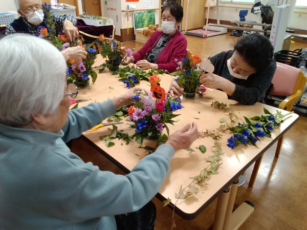 今回はフラワーアレンジメントのご様子と、フラワーに参加して下さった方々へお茶とお菓子をご提供致しました(`・ω・´)!