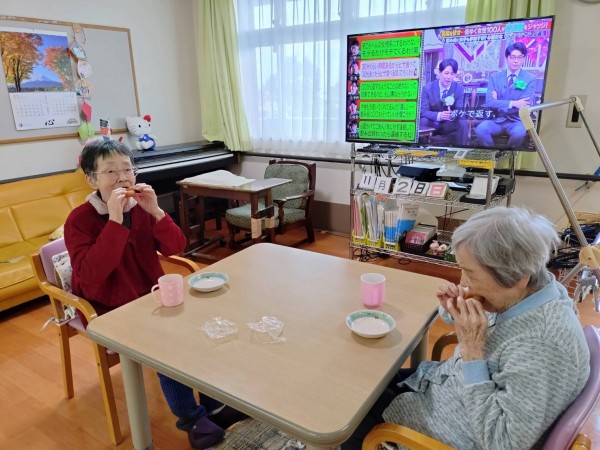 みなさま大好きで、いつもは手で持たれず職員が介助する方も・・・