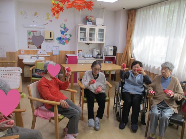 この日は、紅組!青組!と分かれ玉入れとお手玉送り競争を行いました