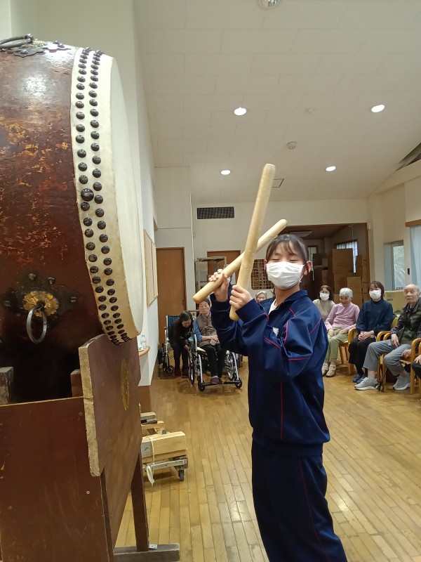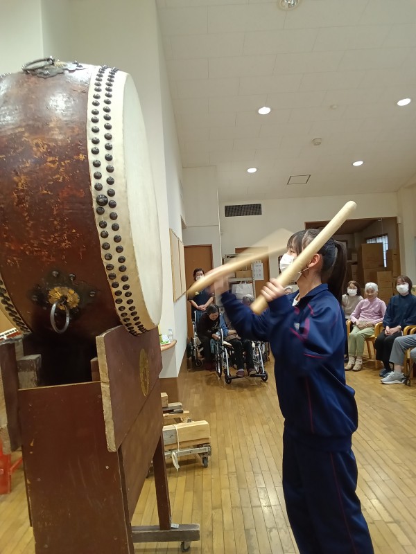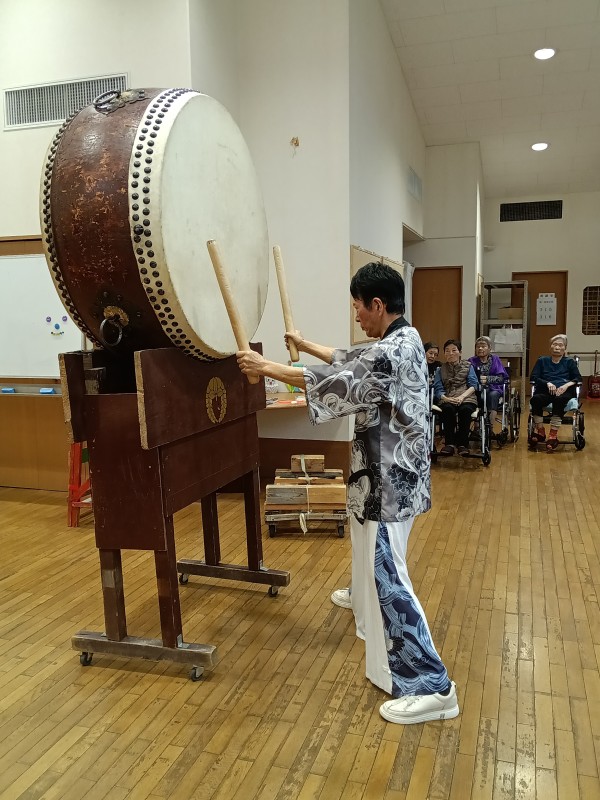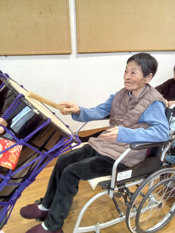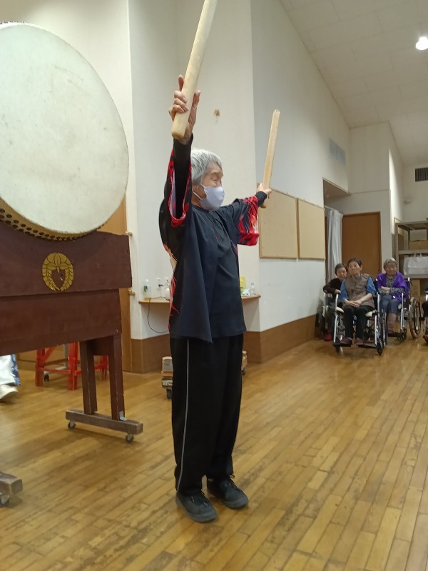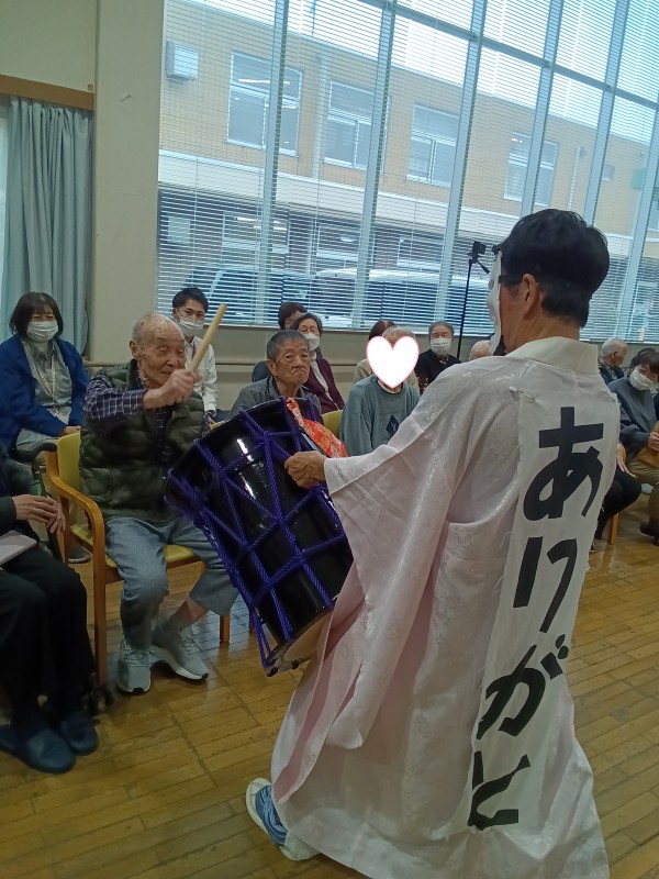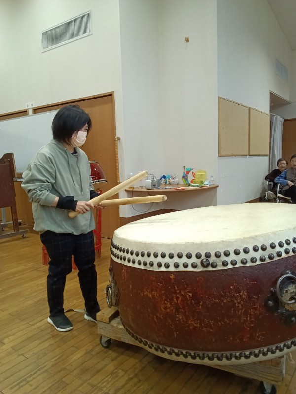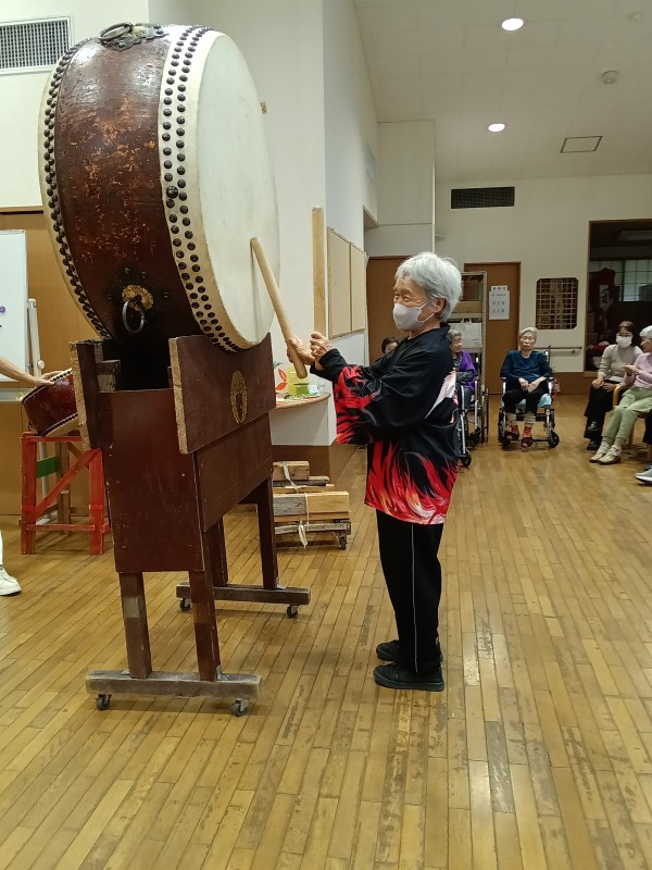 地域の方々とご利用者様にも大太鼓叩いてもらいました!