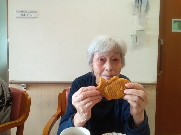 今日はおやつにたい焼きをご用意して皆様に食べて頂きました。