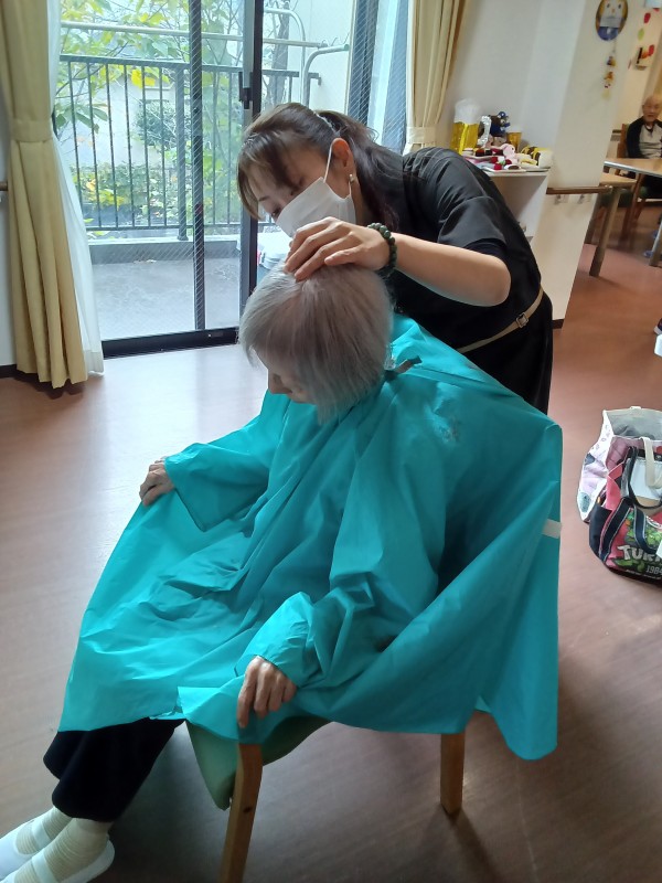 入居者様が毎回楽しみにされているので、スタッフもこの日のためにいつも以上に健康管理に気を使い入居者様は全員理美容を