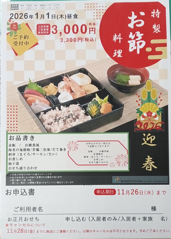 特別食 12月『紅のしずく丼』・1月『特製おせち料理』