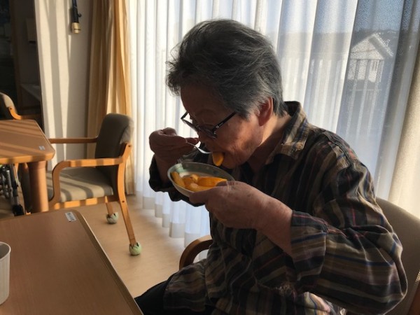 だんだんと秋も深まって来ましたね。ということで、私たちみんなの家の住人の皆様にとって、秋は何と言っても味覚の秋です。今日はご家族からちょうど熟した柿を頂戴しました。