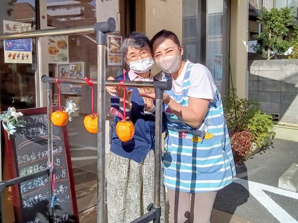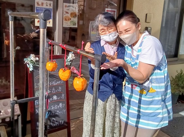 昨日、昔のご家族様より渋柿をたくさん頂きましたので、皮をむいてご利用者様と一緒に玄関の軒下へ干してみました。