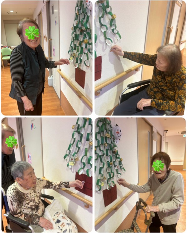 今回の工作レクは、輪っかをつないで作る手作りクリスマスツリーに挑戦です(*´▽`*)