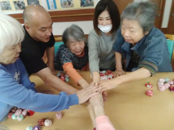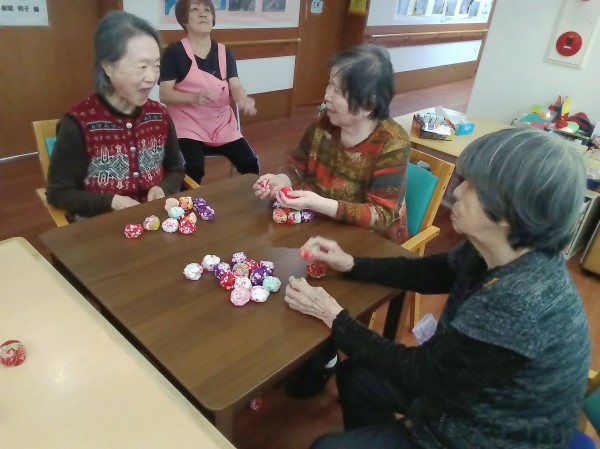 昔は五つ位は出来たのにー。や、小さいからやりにくい…などと言いながらも、皆さん上手にお手玉をされていました(*^-^*)