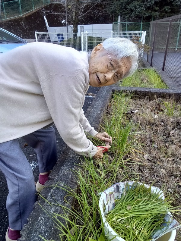 師走の始まりに、庭のニラを収穫しました! ~ グループホームみんなの家・横浜三保の介護ブログ ~