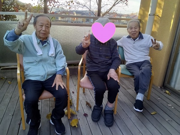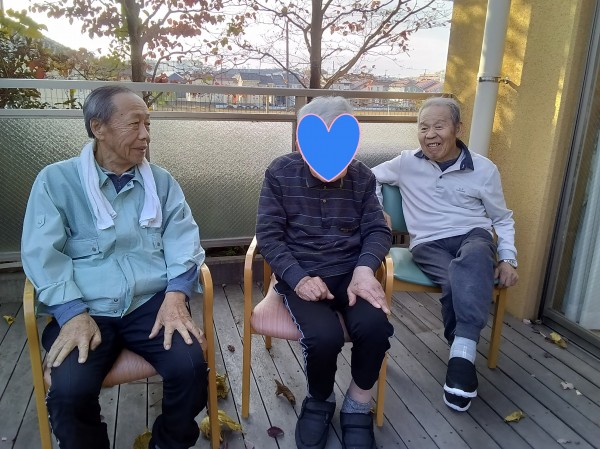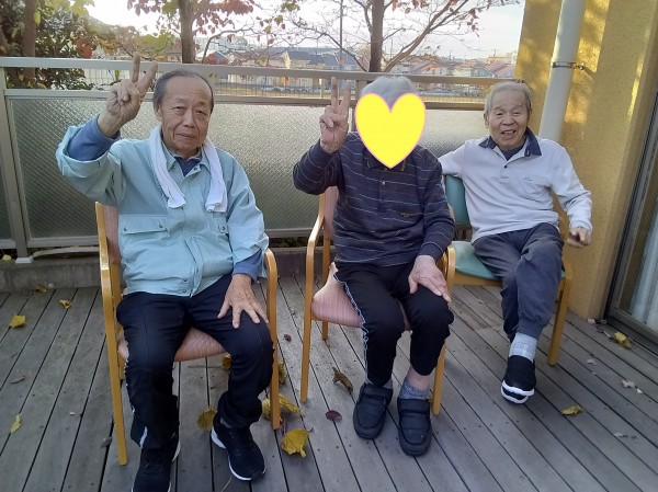 先日我がホームの男性メンバー3名様がウッドデッキに大集合し、外気浴を楽しみました♪
