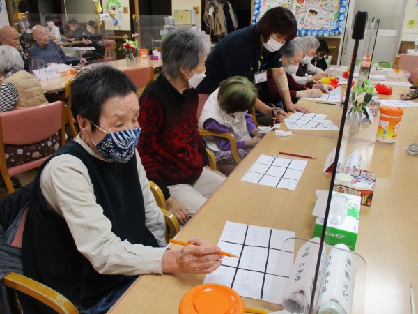 本日午後のレクリエーションは【手作りビンゴゲーム】を行いました。