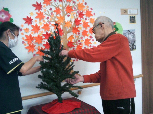 楽しそうにツリーに飾り付けを行いました。 綺麗に飾りました(*^_^*)