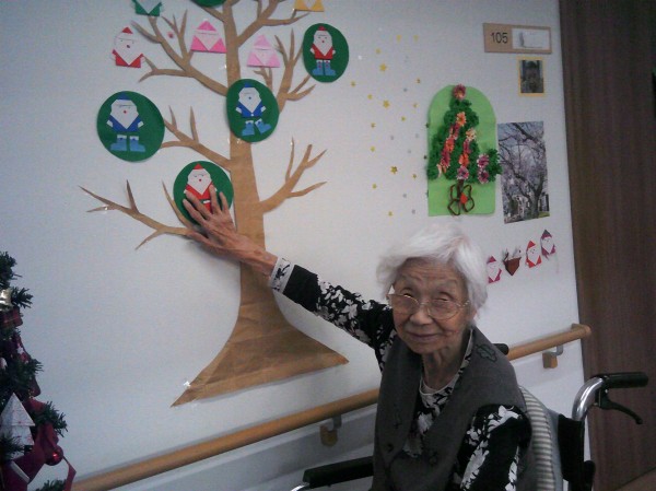 折り紙で作ったサンタクロース????を壁に貼っています( ^ω^)・・・ これまた綺麗だこと!とニッコリでした(*^_^*)