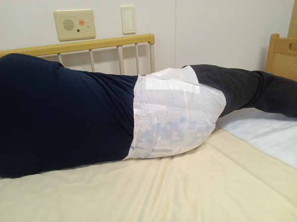 モデルに対して用意していたオムツが小さかったため、テープの位置がギリギリですが・・・(;^ω^)