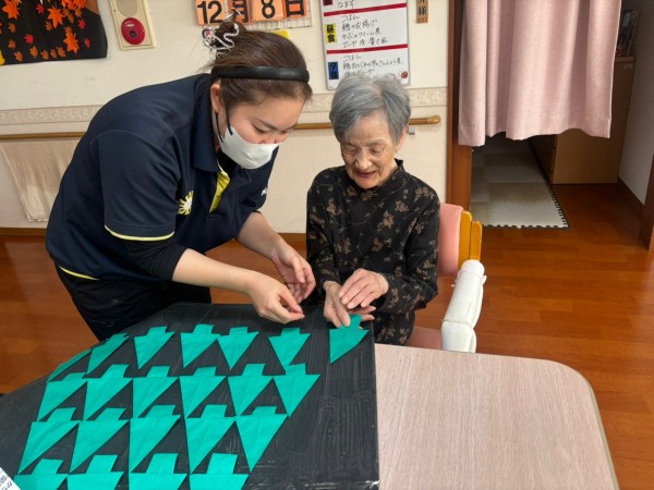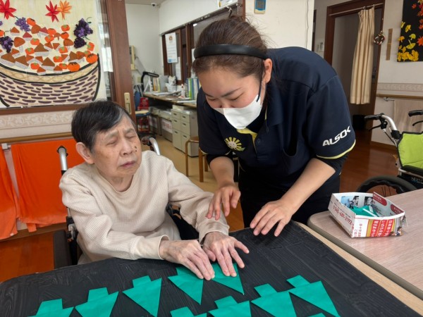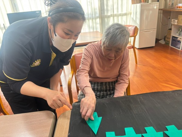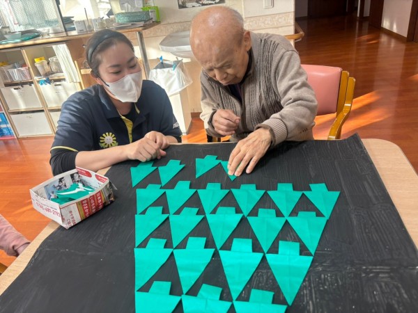 職員もサポートしながら利用者様に1つずつ貼り付けてもらいました(*^^)v