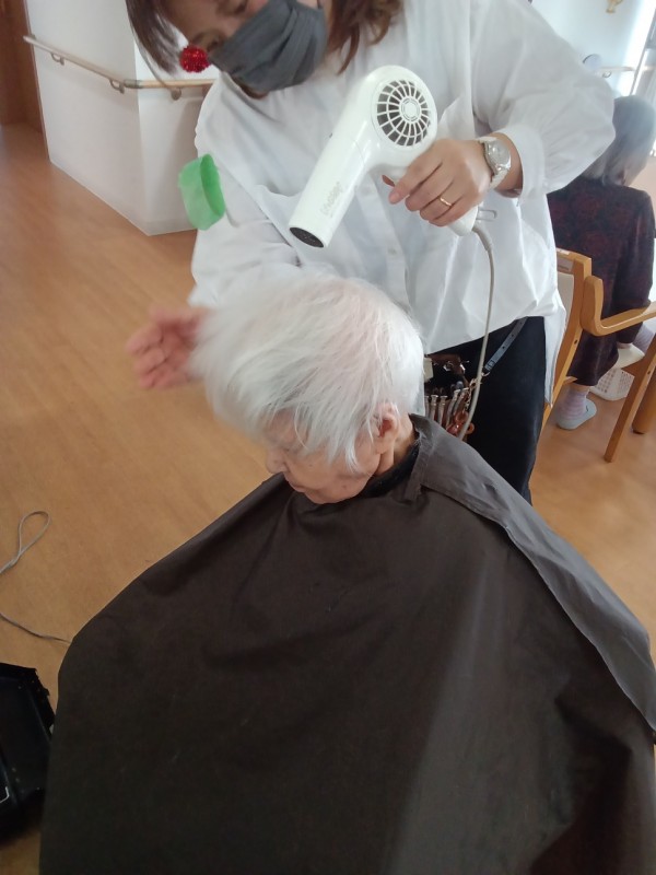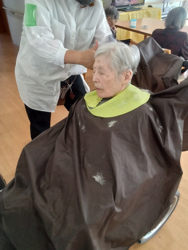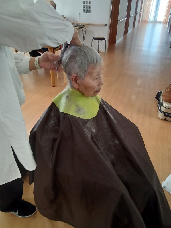 慣れ親しんだ環境の中で、職員が一人ひとりの様子を確認しながら対応し、皆さま安心した表情で散髪の時間を過ごされていました。髪を整えることで気持ちもすっきりされ、「さっぱりしたね」と笑顔が見られるひとときとなりました。