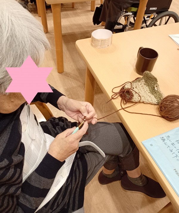 M様編み物に夢中です。とっても器用に編んでいらっしゃいました。