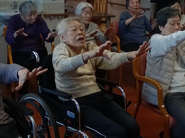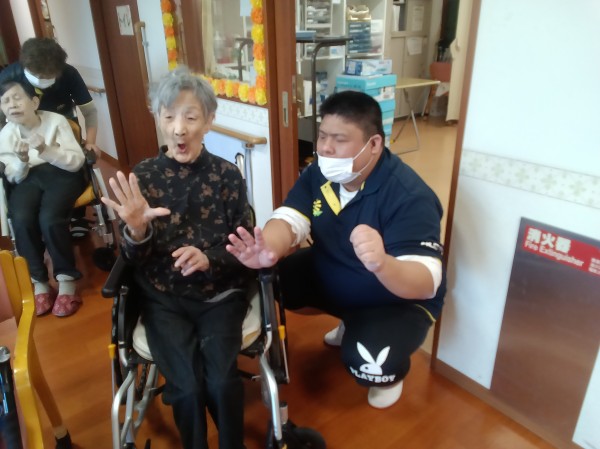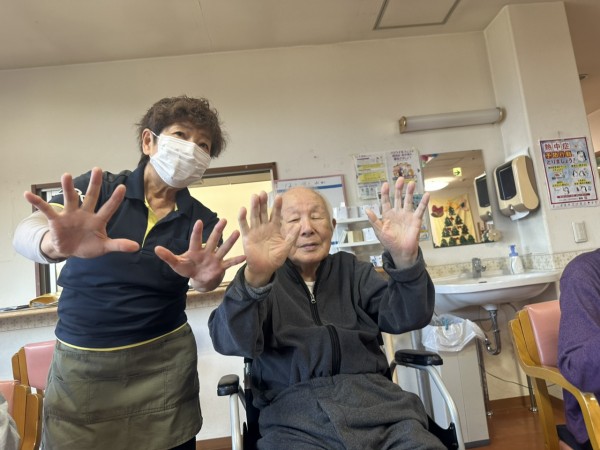 最初は寒い寒いとおっしゃっていたご利用者様も、体を動かしているうちに体が温まってきたようで、穏やかな表情で体操に参加されていました(*^^*)