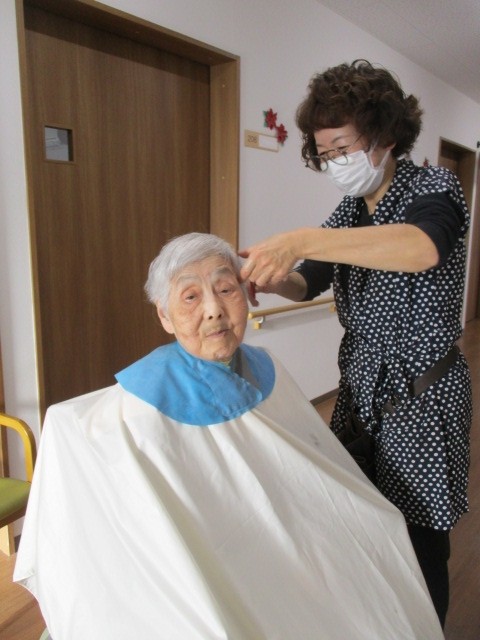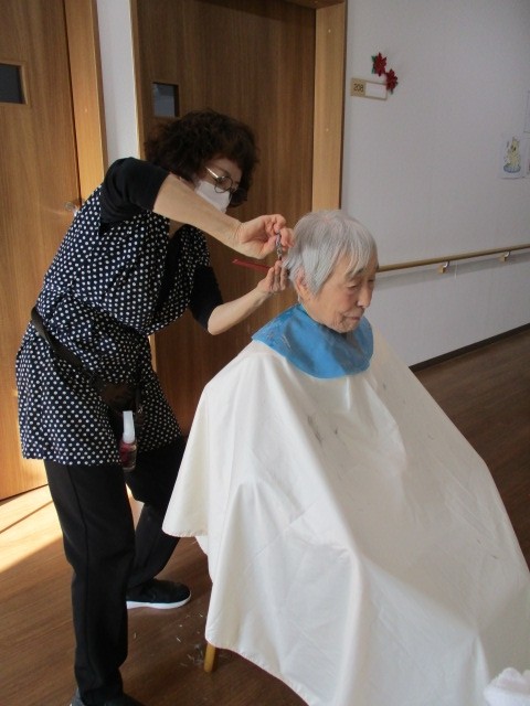 今日は2階で訪問理美容(カット)が行われました。 そのご様子をお知らせいたします!!