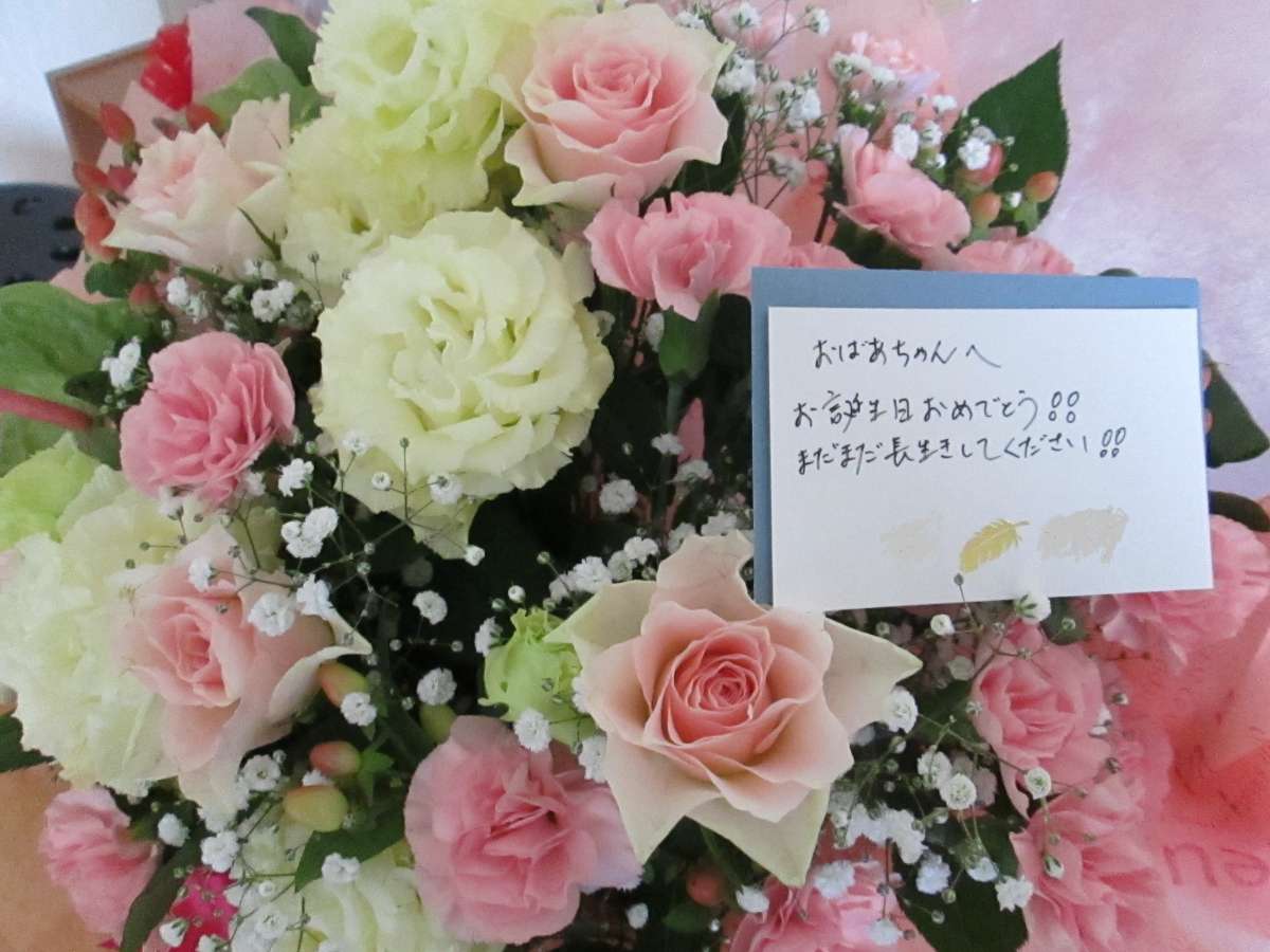 お孫さまからこんな素敵な花束を頂いた お幸せな方もいらっしゃいましたお孫様の 長生きしてください 期待にこたえてください