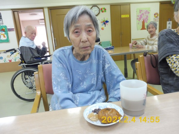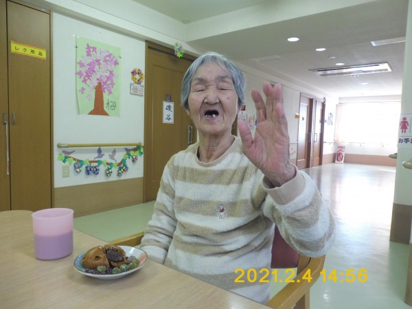 節分のおやつは「饅頭」「甘納豆」にしました。