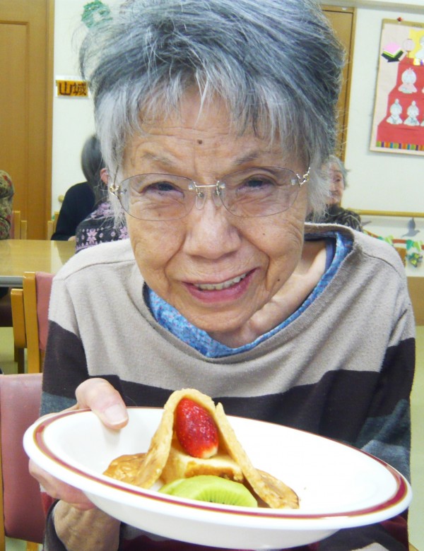 果物やお菓子切ってくれた方は、さすが、元主婦!手際が良かったです!制作ケーキになりましたが、イチゴがたくさんのっていたので、職員もうれしかったです!