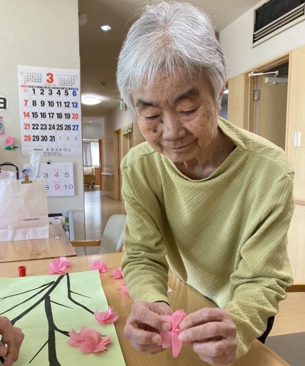 ソメイヨシノはすっかり散って、八重桜もそろそろ散り始めていますが、当ホームでは満開の桜がお部屋をにぎわせています。