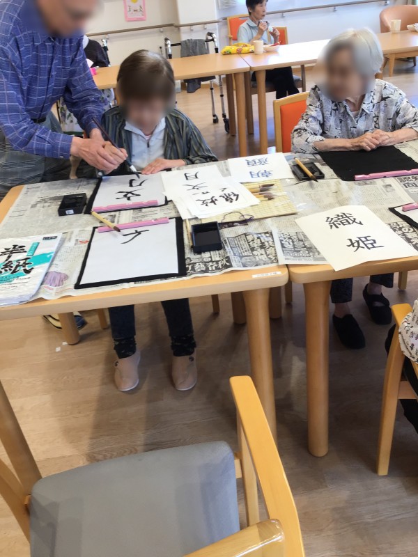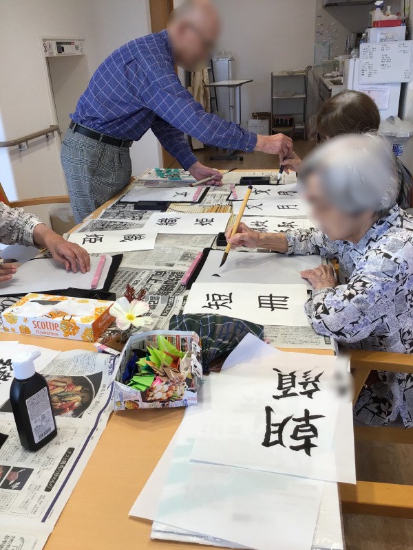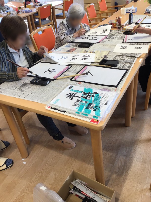 先日やりました、書道の会の様子です♪( ´▽`)
