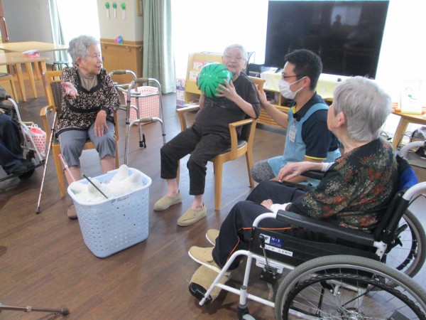 2階は皆さまで輪になっていただき、スイカのビーチボールを