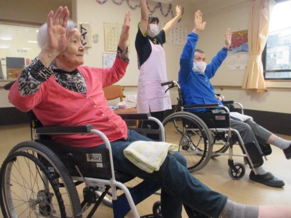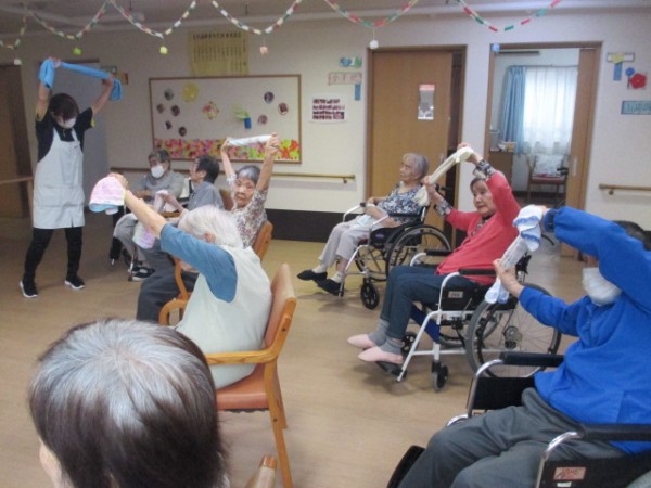 この体操も3回目の取組で、ご利用者様もタオルを使った