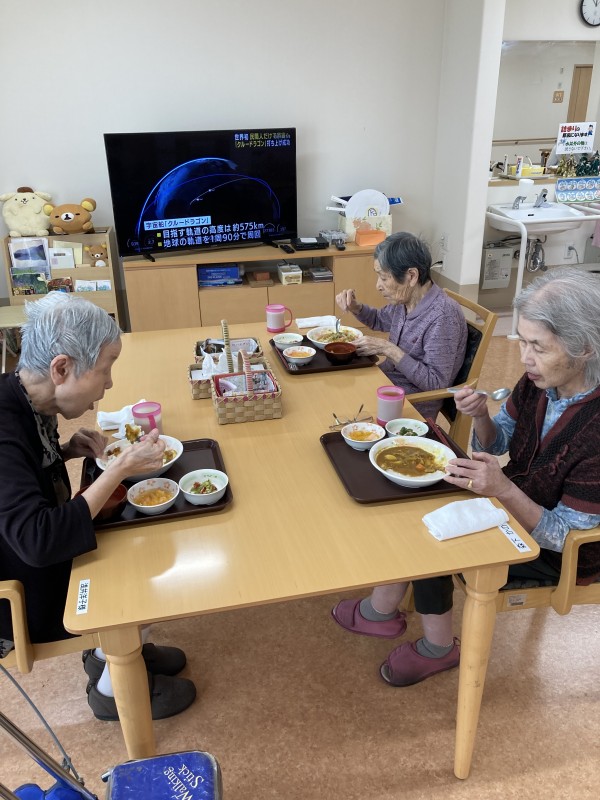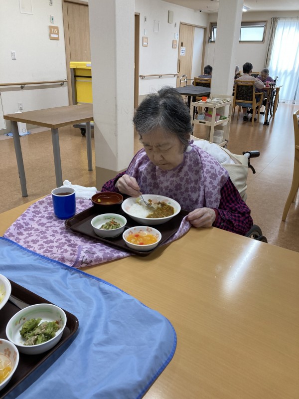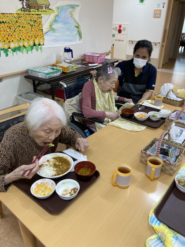 いつも大変お世話になっております。介護付有料老人ホームみんなの家・東浦和3です。ホームでもお昼ご飯にカレーライスが出る日があります。日本の国民食とも言われるカレーライス。カレーライスが皆さまにご好評いただいているかお食事風景を覗いてみました。