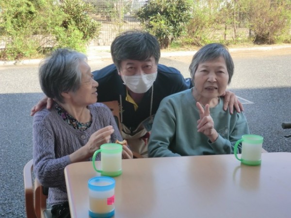 気分転換に今日は外でおやつを食べよーーっ(*^^*)