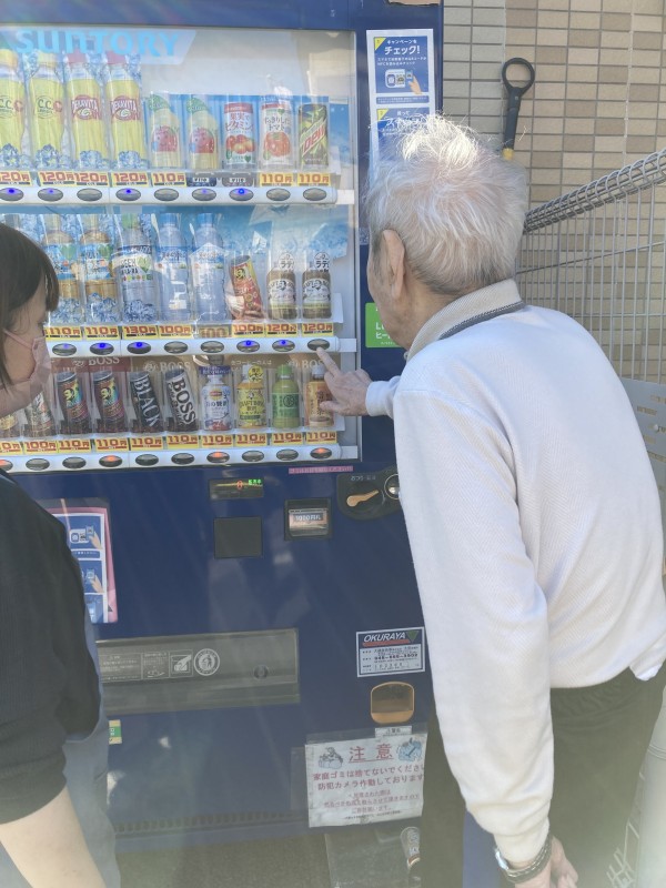 写真のように、施設の横にある自販機で時々、缶コーヒーなど買われています。