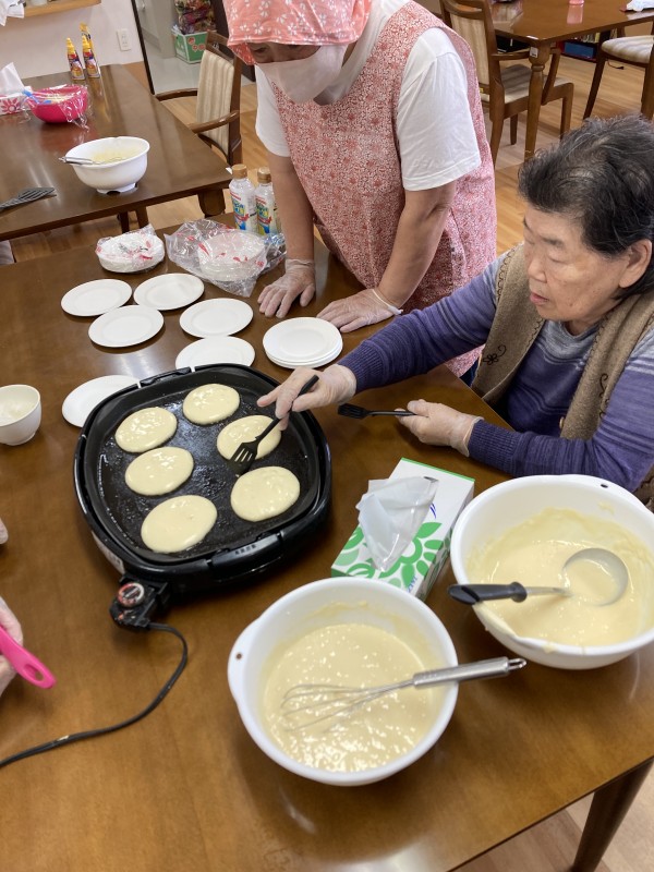 #介護付有料老人ホームみんなの家・七里新堤 #介護レク #手作りおやつ #ホットケーキ