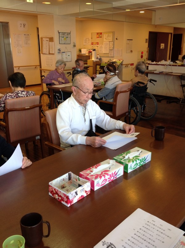 職員さんが準備した音源に合わせて皆様で歌われていました♪