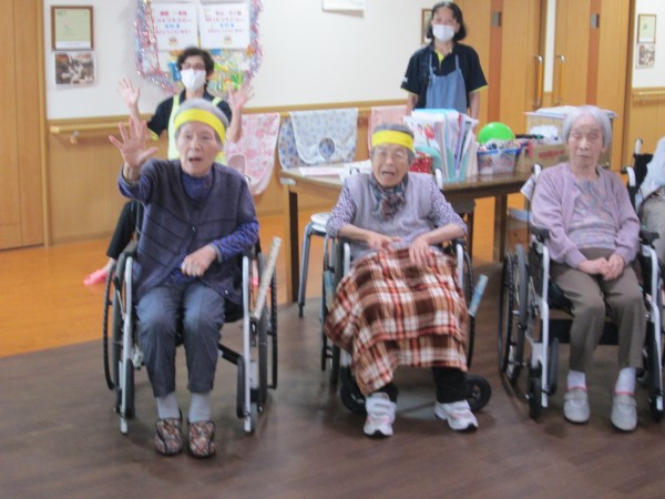 風船バレーでは、スタッフもご入居者の皆さんも風船を追いかけるのに必死です‼‼(`・ω・´)