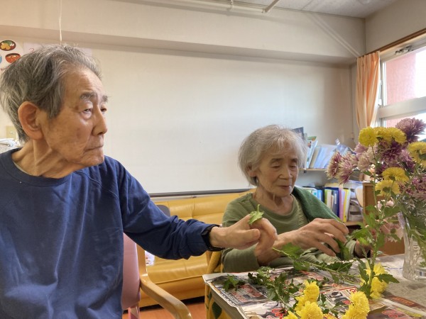 奥様が花瓶に生け、ご夫婦で鑑賞。