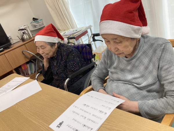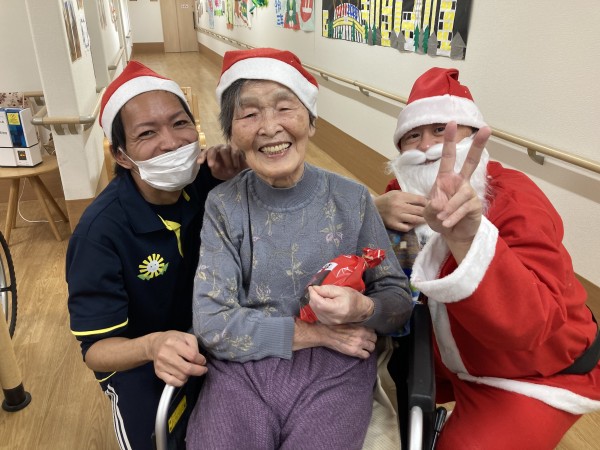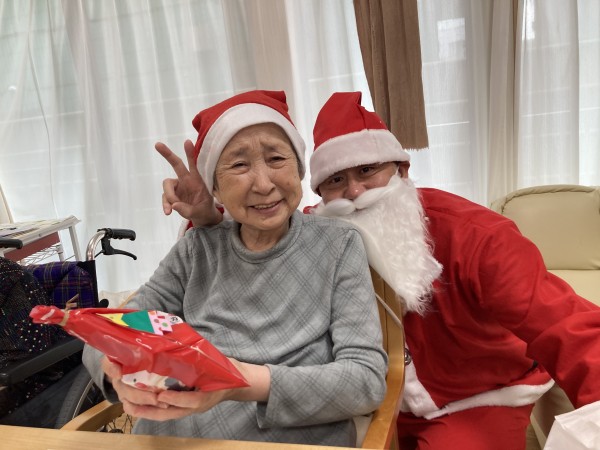 今日はホームでクリスマス会を行いました。職員がサンタクロースに変装し、