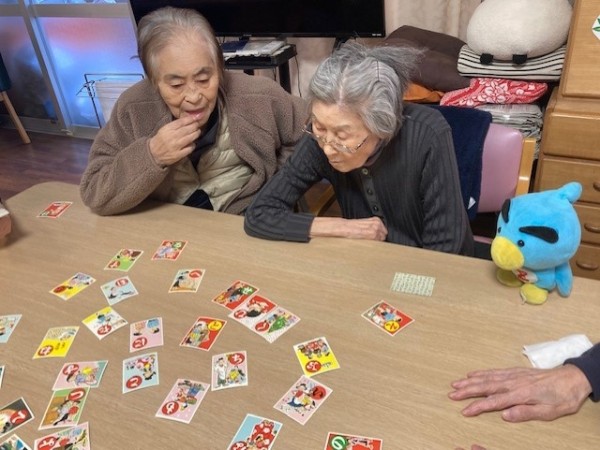 今回のブログはお正月ということでご利用者様と一緒にカルタをしました。女性同士の仁義なき戦いが始まりました(笑)ちょっと話しを盛りすぎましたね(#^^#)