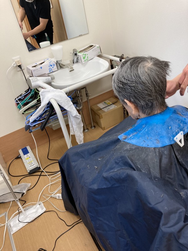 27日(日)は訪問理美容があり、みなさん、髪をカットされました。