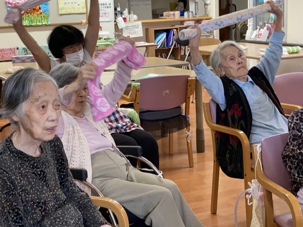 今月はタオル体操に参加しました。
