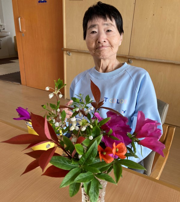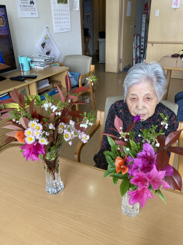 たまたまですが、スタッフがいろんな春の花を持ってきましたので、ご利用者様に生けていただきました。