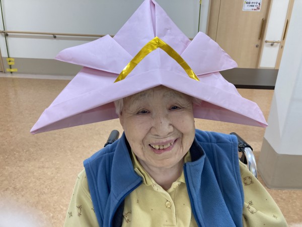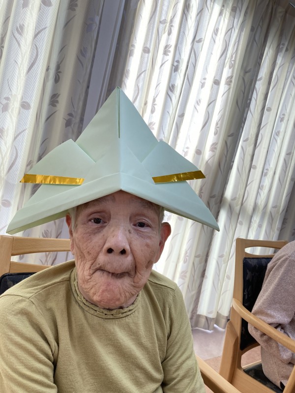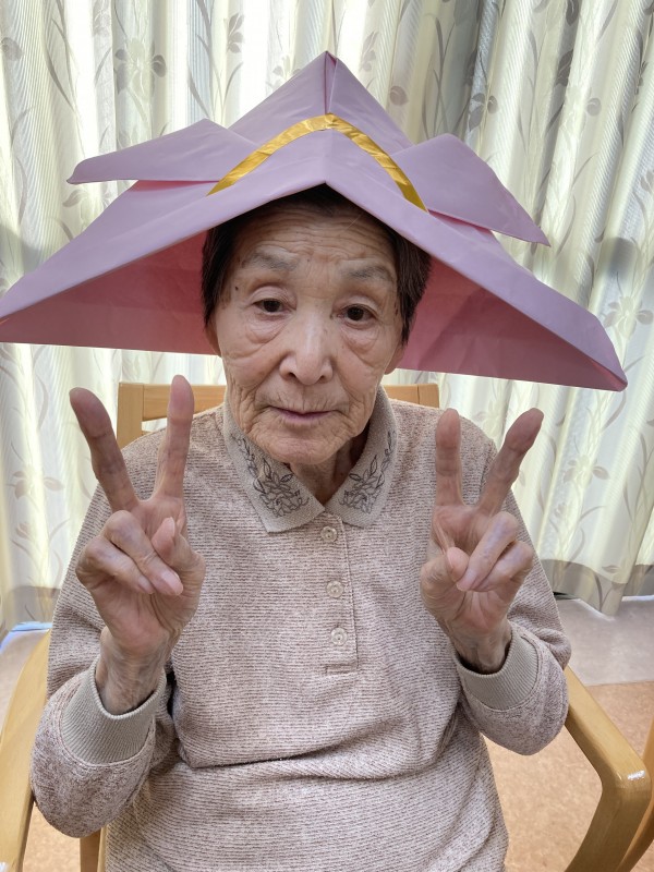 5月の行事(端午の節句)で、兜をかぶり、写真を撮りました。