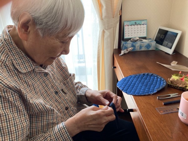 最近の私の出来事。リネン交換(お部屋のシーツ交換のこと)に伺ったときに「ホーム長、こっちとこっちの柄だったらどっちが好き?こんなの使わない?」と。