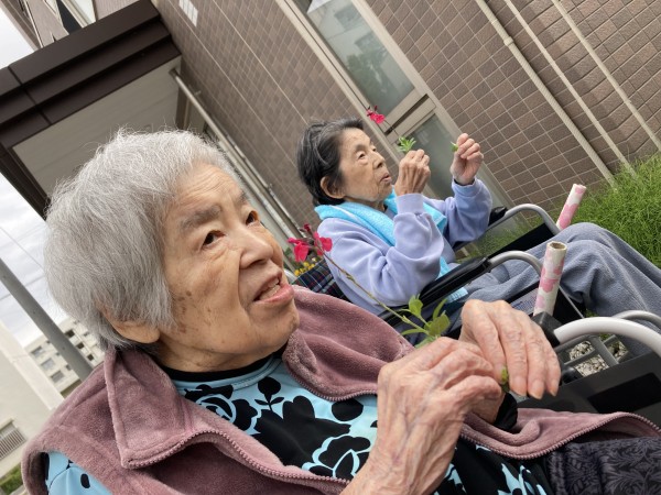 施設へ戻ってきてから、施設の花壇でお花見をしました( *´艸`)