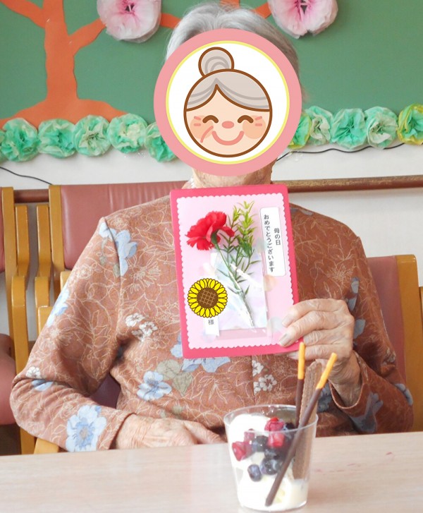 5月10日はGH南花畑では、母の日イベントを行いました。3Fの女性利用者様に、カーネーションのカードを贈りました。