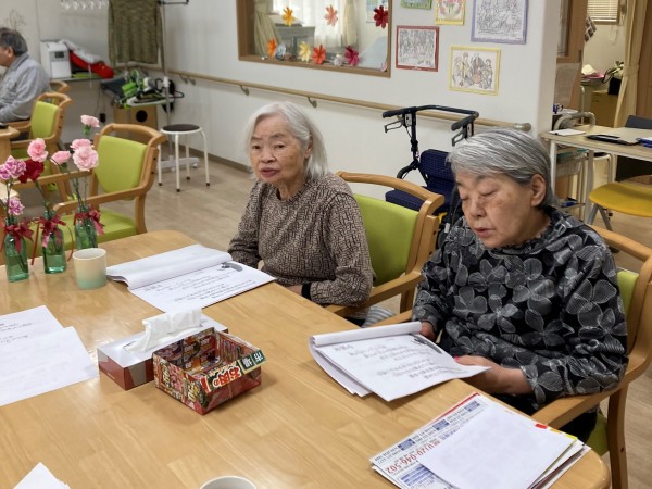 歌のお好きなお母様たちが、歌集をみながら歌われます☺