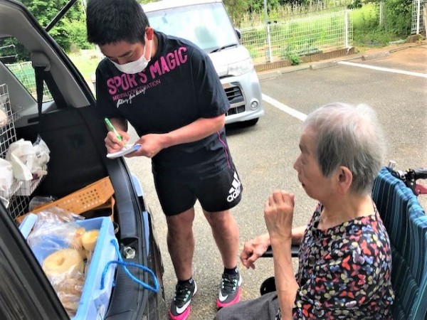 コロナ禍で、移動パン屋さんの買い物も、希望を伺って職員が購入していましたが、久しぶりに皆様の目で見てパンを選んで頂きました。