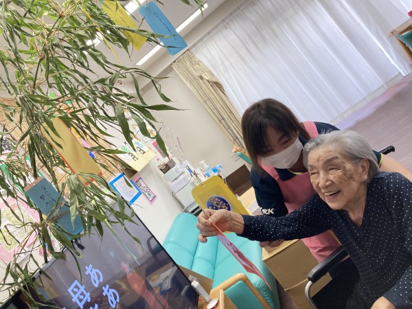 「これ、ひこ星様と、おり姫様???可愛いわね(^^)/」と笑顔で話されるご利用者様。