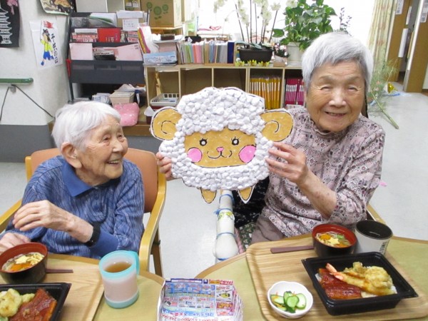 みんなで作った飾りの下で、美味しい昼食を食べましたね。