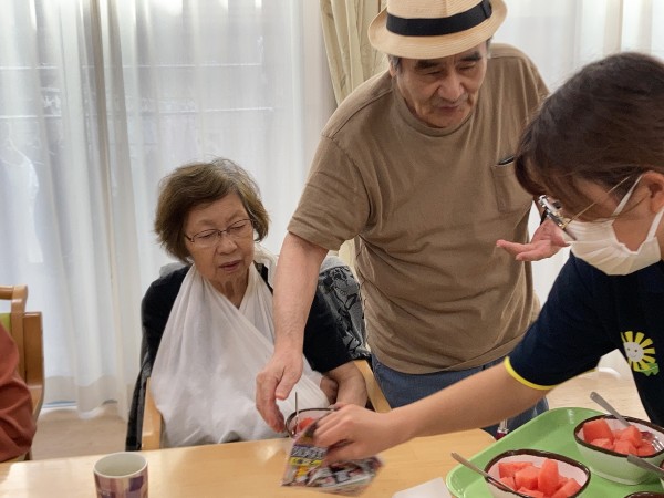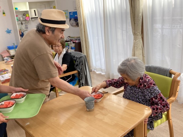みんなですいか割りをした後、おやつで頂くことにしました☺